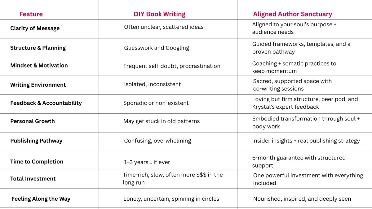 This is where the magic happens — the deep inner work, the messy middle, the raw truth that becomes your gold as you write your most transformative chapters.